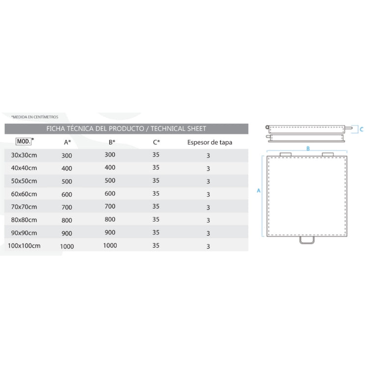Las tapas de la cisterna están hechas de chapa galvanizada por modo caliente para garantizar una alta resistencia a los golpes y los agentes atmosféricos.